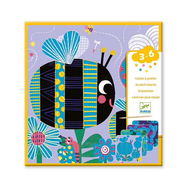 Η συσκευασία περιλαμβάνει 4 κάρτες με διαφορετικά έντομα καθώς και ειδικό εργαλείο για να ξύσετε τις εικόνες.