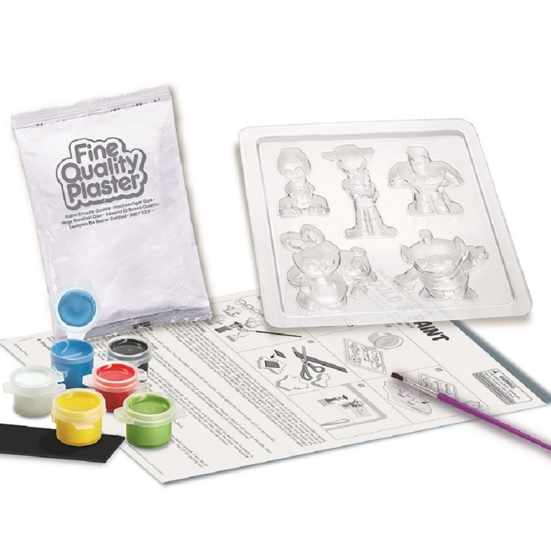 ΠΕΡΙΕΧΟΜΕΝΑ: 1 καλούπι με 5 διαφορετικούς χαρακτήρες Toy Story, 1 σακουλάκι γύψου σε σκόνη, 1 ταινία με μαγνήτες, 1 παλέτα με 6 χρώματα, 1 πινέλο και αναλυτικές οδηγίες.
