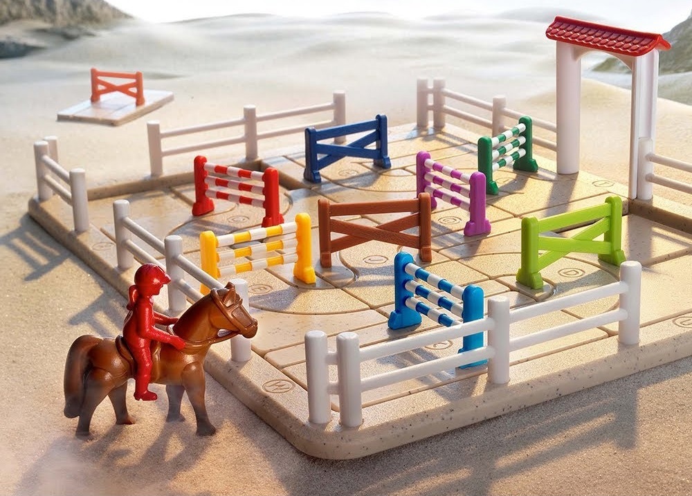 Περιεχόμενα: ταμπλό, 1 πύλη εξόδου, 10 κομμάτια παζλ με εμπόδια και μονοπάτια, 1 άλογο με τον αναβάτη του, εγχειρίδιο με 80 προκλήσεις και τις λύσεις τους.