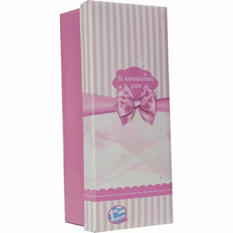 Τα ρουχάκια της είναι γαζωμένα όπως και τα μαλλάκια της ώστε να τα χαιδεύει και να τα χτενίζει το παιδάκι όπως θέλει εκείνο.