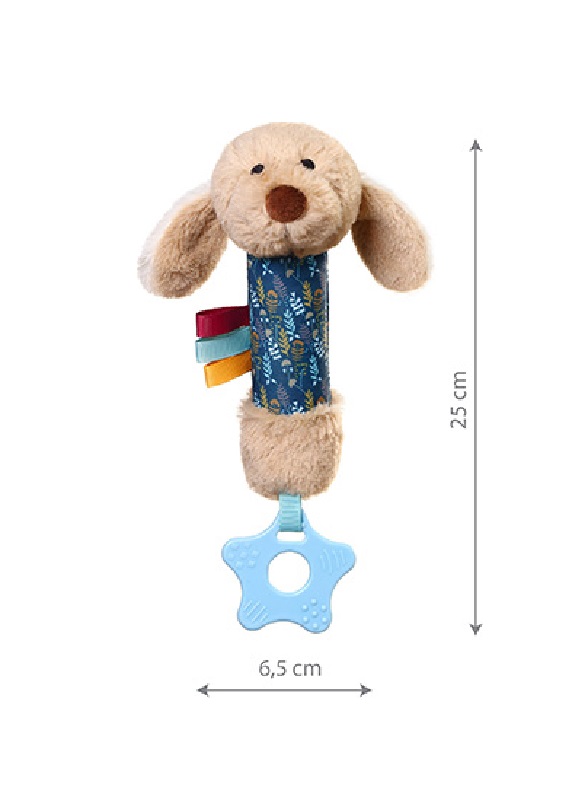 Λούτρινο squeaker με πολύχρωμες ετικέτες για εξερεύνηση και μασητικό για τη δύσκολη περίοδο της οδοντοφυΐας.