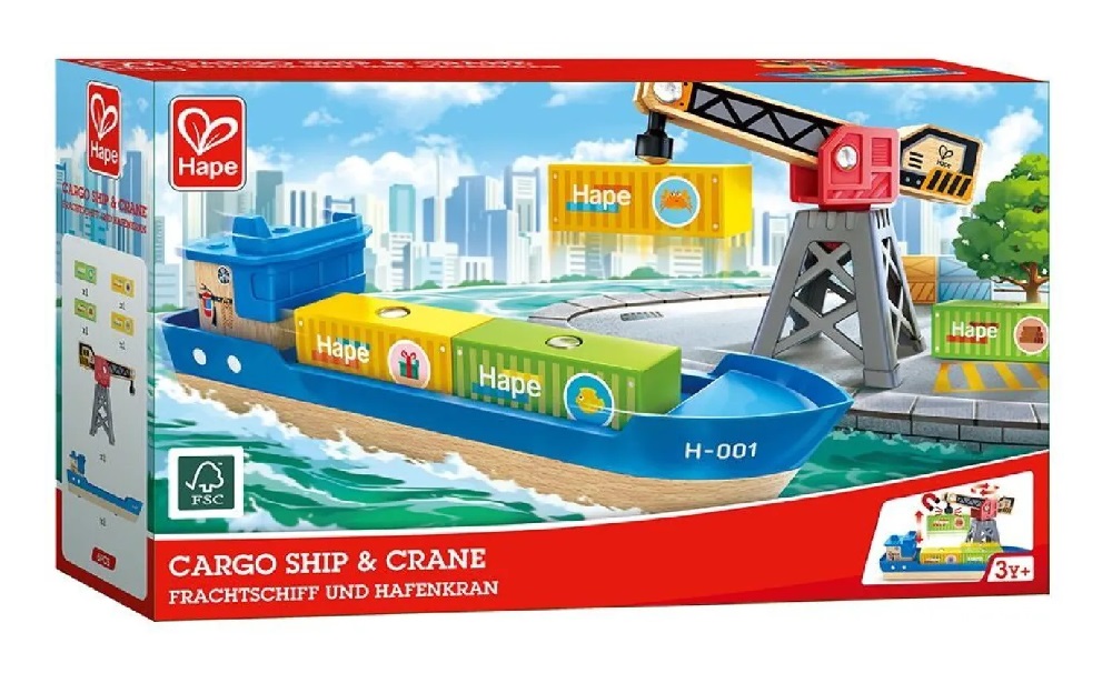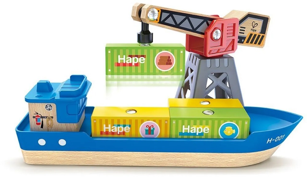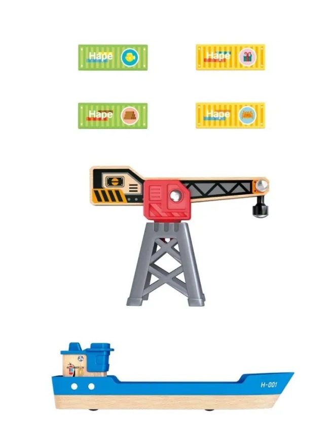 Hape Railway Ξύλινο Cargo Πλοίο & Γερανός.