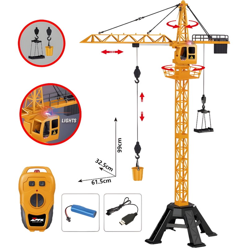 🚧 Με αυτόν τον τηλεκατευθυνόμενο γερανό, τα παιδιά μπορούν να ζήσουν την εμπειρία του εργοτάξιου και να αναπτύξουν τις ικανότητές τους στη διαχείριση και τον έλεγχο.